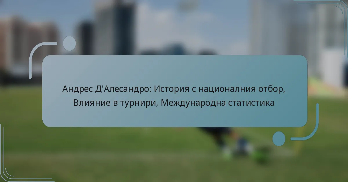 Андрес Д’Алесандро има изтъкната история с аржентинския национален отбор, дебютирайки в началото на 2000-те години и играейки ключова роля в няколко големи турнира. Неговите умения и лидерство значително повлияха на представянето на отбора, оставяйки трайно наследство. През цялата си международна кариера, статистиките на Д’Алесандро подчертават неговата ефективност на терена, демонстрирайки способността му да реализира важни голове и асистенции в ключови мачове.